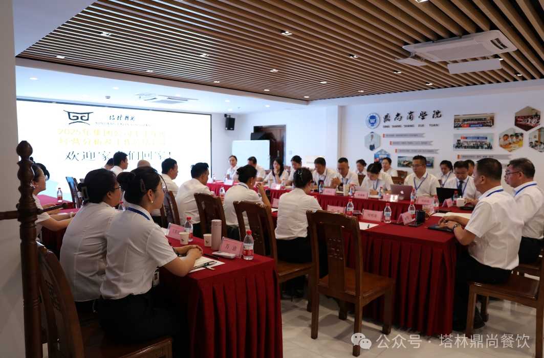 2025年7月14-15日,新疆塔林鼎尚餐飲管理(集團(tuán))有限公司在烏魯木齊市機(jī)關(guān)辦公樓隆重召開"集團(tuán)公司2025年上半年度經(jīng)營(yíng)分析會(huì)暨半年度總結(jié)計(jì)劃會(huì)議"。集團(tuán)公司領(lǐng)導(dǎo)、各分子公司負(fù)責(zé)人及財(cái)務(wù)管理團(tuán)隊(duì)齊聚一堂,全面總結(jié)上半年工作成果,深入分析行業(yè)發(fā)展形勢(shì),系統(tǒng)部署下半年重點(diǎn)任務(wù),為沖刺全年經(jīng)營(yíng)目標(biāo)凝聚共識(shí)、明確路徑。本次會(huì)議“以市場(chǎng)為中心做細(xì)管理、以顧客為中心做優(yōu)服務(wù)、以質(zhì)量為中心做精菜品"為主基調(diào),通過戰(zhàn)略研討、專題匯報(bào)、經(jīng)驗(yàn)共享等形式,進(jìn)一步統(tǒng)一思想、提振信心,為實(shí)現(xiàn)"給顧客提供高品質(zhì)的服務(wù)"宗旨注入強(qiáng)勁動(dòng)力。